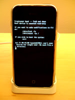 Photo of an crashed iPhone (terminal showing errors) on display next to an iMac at the Apple Store. Photo taken, of course, with iPhone.Photo : http://poopforbrains.com/2007/7/23/crashed [+]