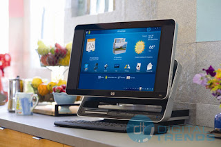 HP’s media-savvy touch screen creation dreams of living in an open-plan kitchen-diner, used as a giant digital post-it note for busy families, running coffee-morning photo slideshows, recording TV and playing it back og an evening. Very cool, but costly
